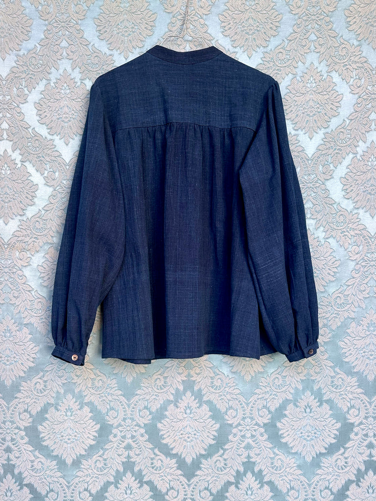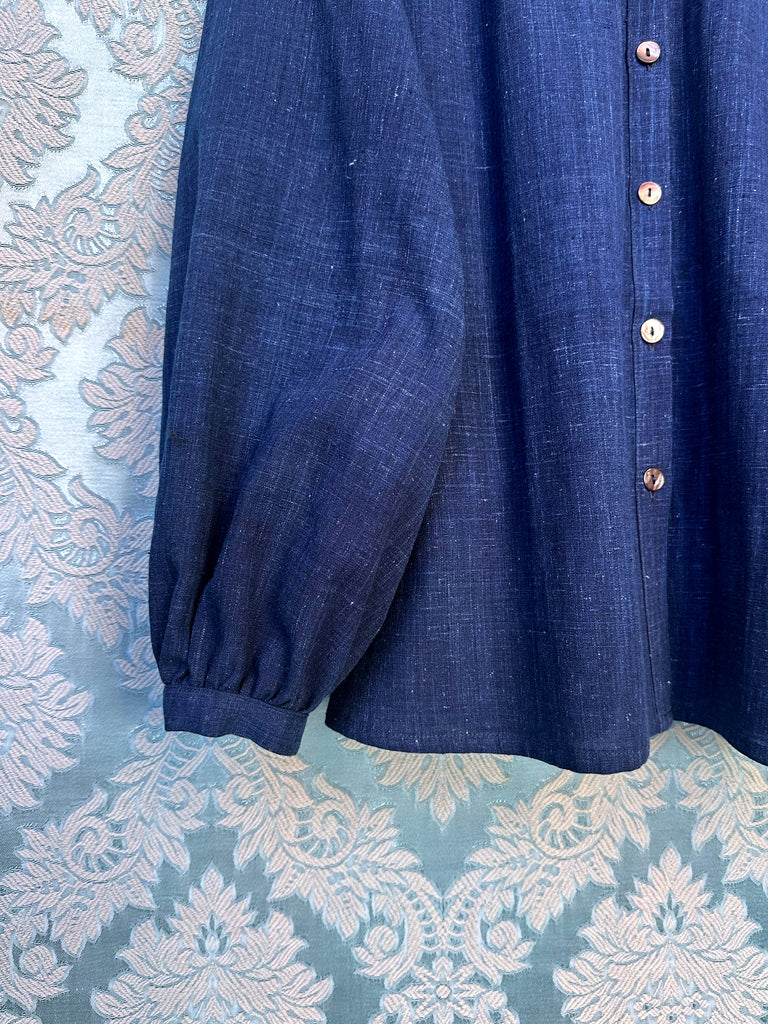 Handloomed real indigo dyed cotton. It has a fine linen like texture with a chambray like weave. This is the perfect blue for a shirt.