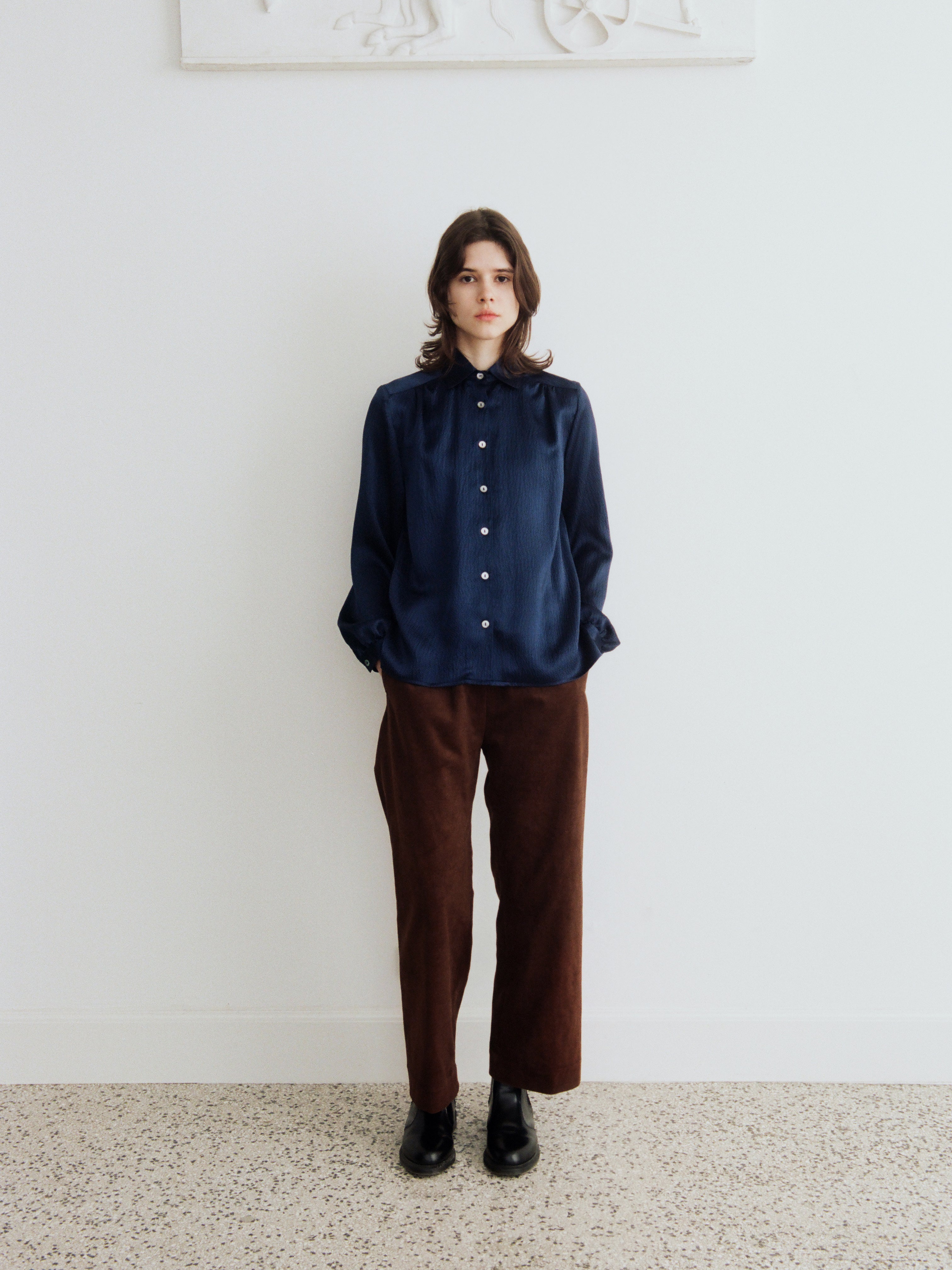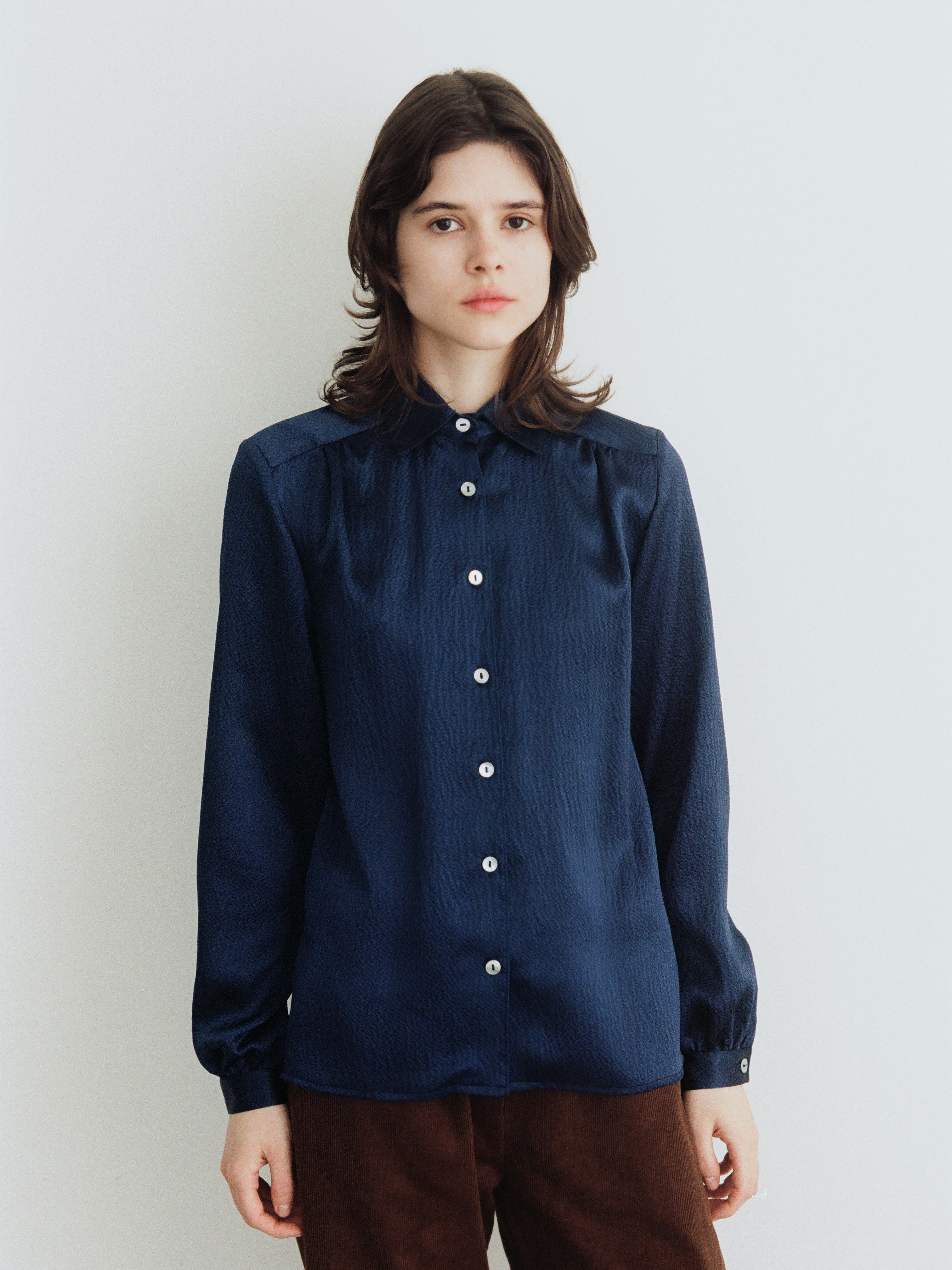 Ingrid Shirt, midnight blue wavy silk