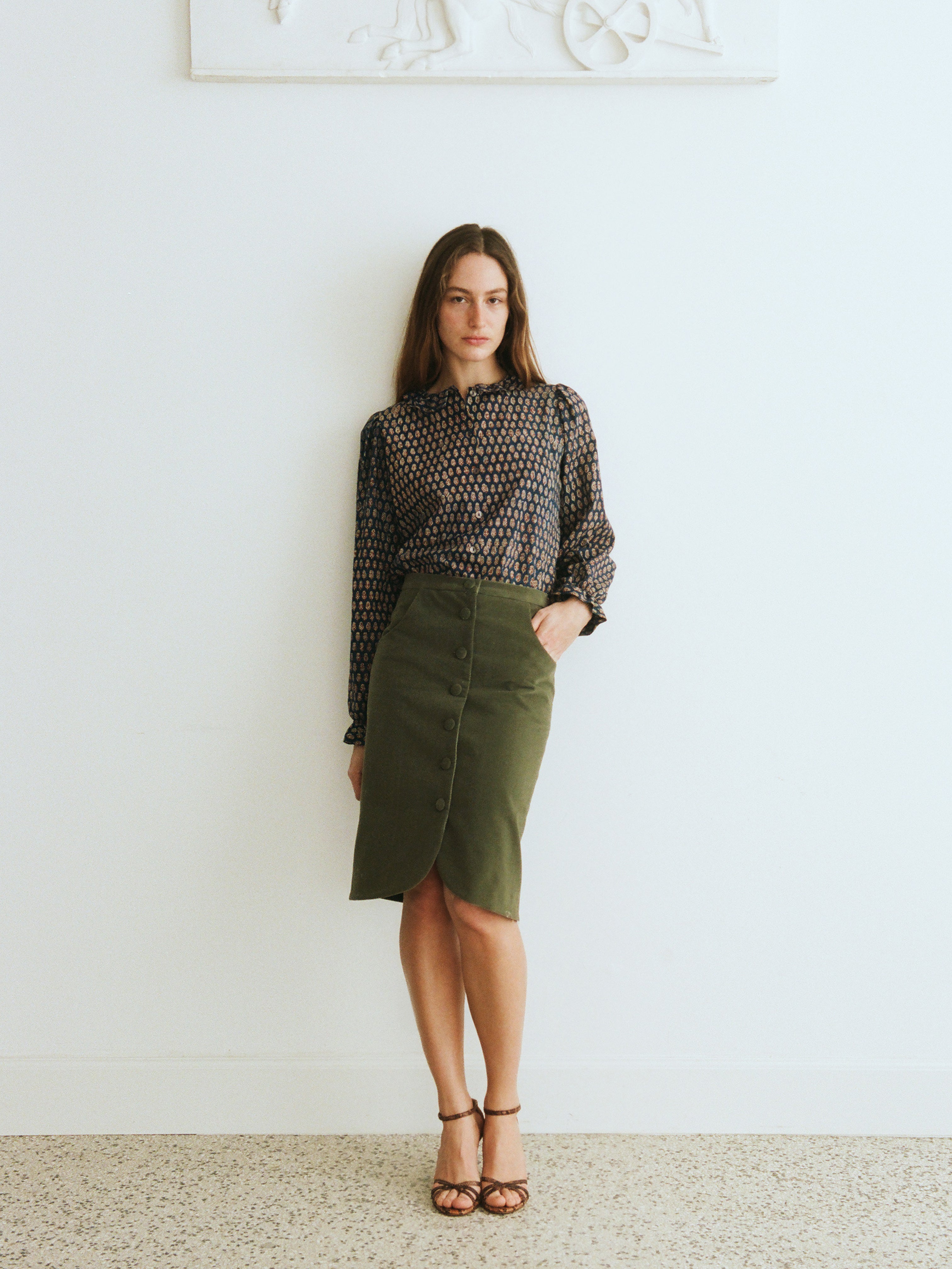 The Gudrun Shirt is named after Malene Malling’s grandmother a Bridge playing, cigarillos smoking, always cooking, wonder of a woman. The warmest person with a cheeky twinkle in her eye. This chic little shirt is feminine and fun and she feels like a very special little number.