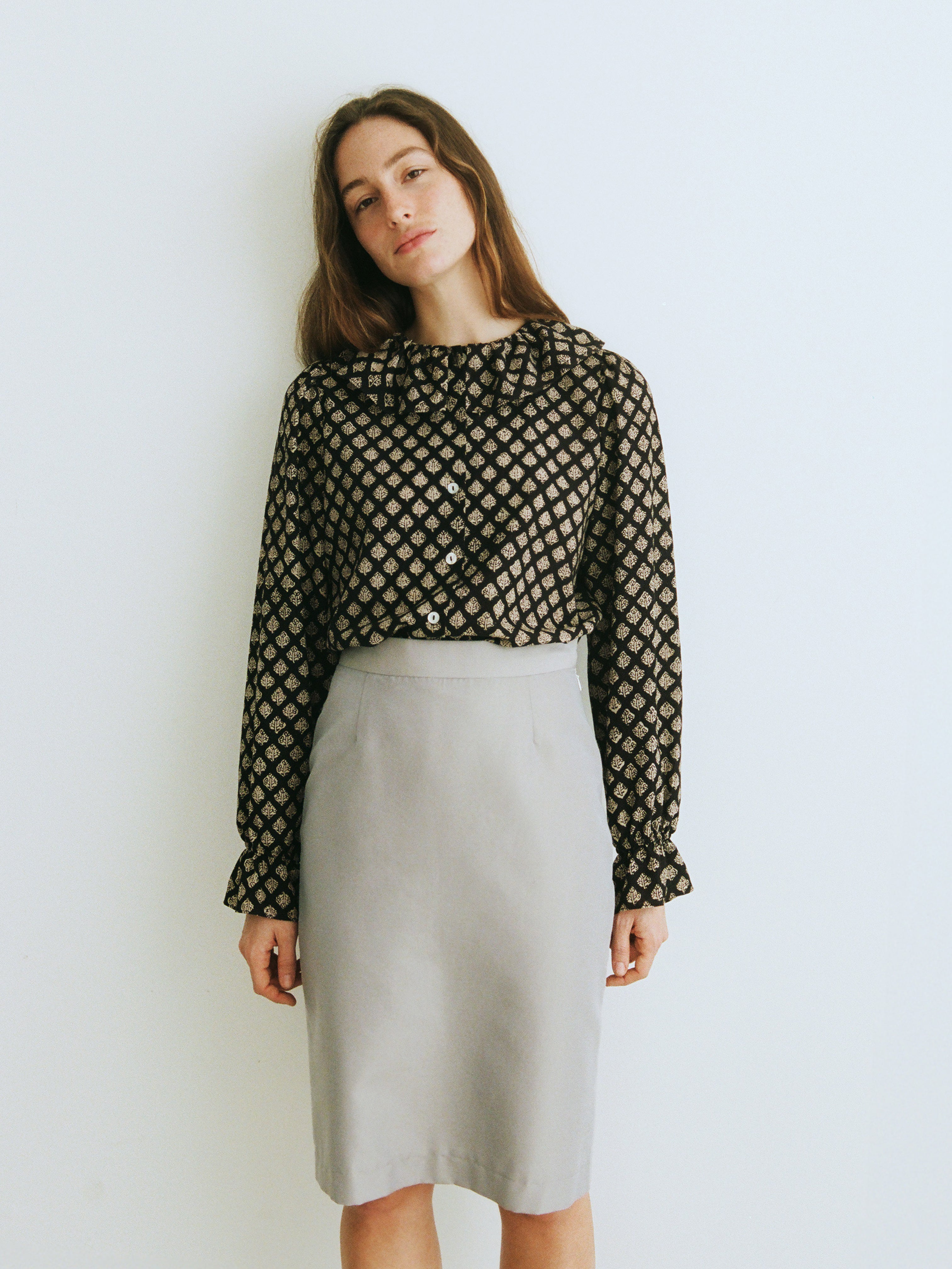 The Loulou pencil skirt is inspired by Yves Saint Laurent’s friend and muse Loulou de la Falaise who was the light of any party for her personality and flamboyant style. The Loulou skirt would rule any court case, but it really wants to go for dinner and drinks. It has a high waist and is cut at the knee making it the perfect pencil skirt.