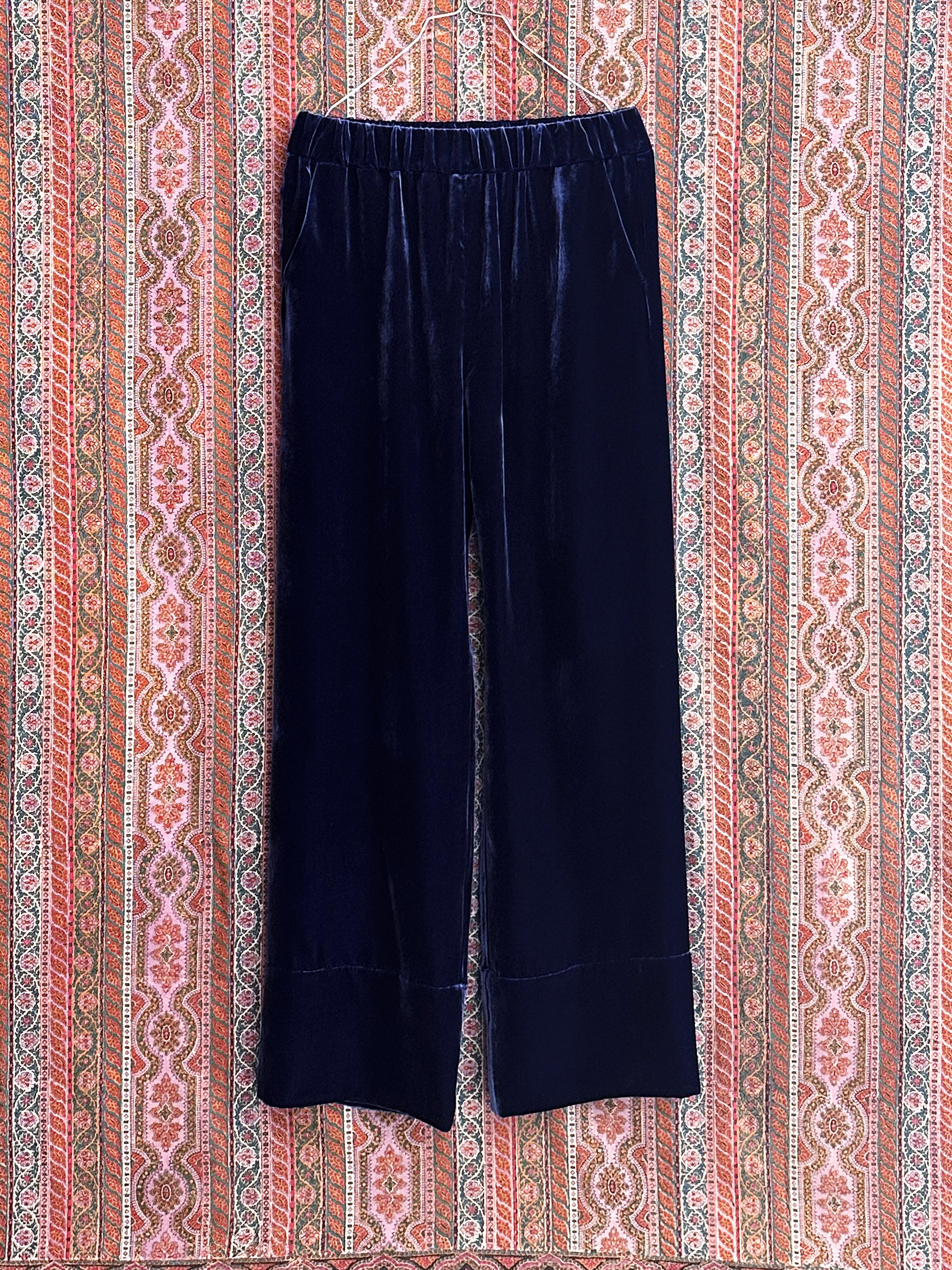 Rampling Pants, deep ocean blue French silk velvet